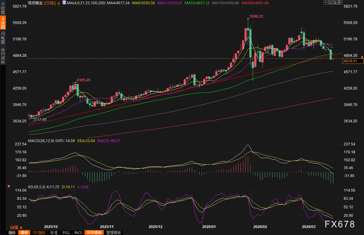 (现货黄金日线图,来源:易汇通)北京时间07:32,现货黄金现报4838.52美元/盎司。